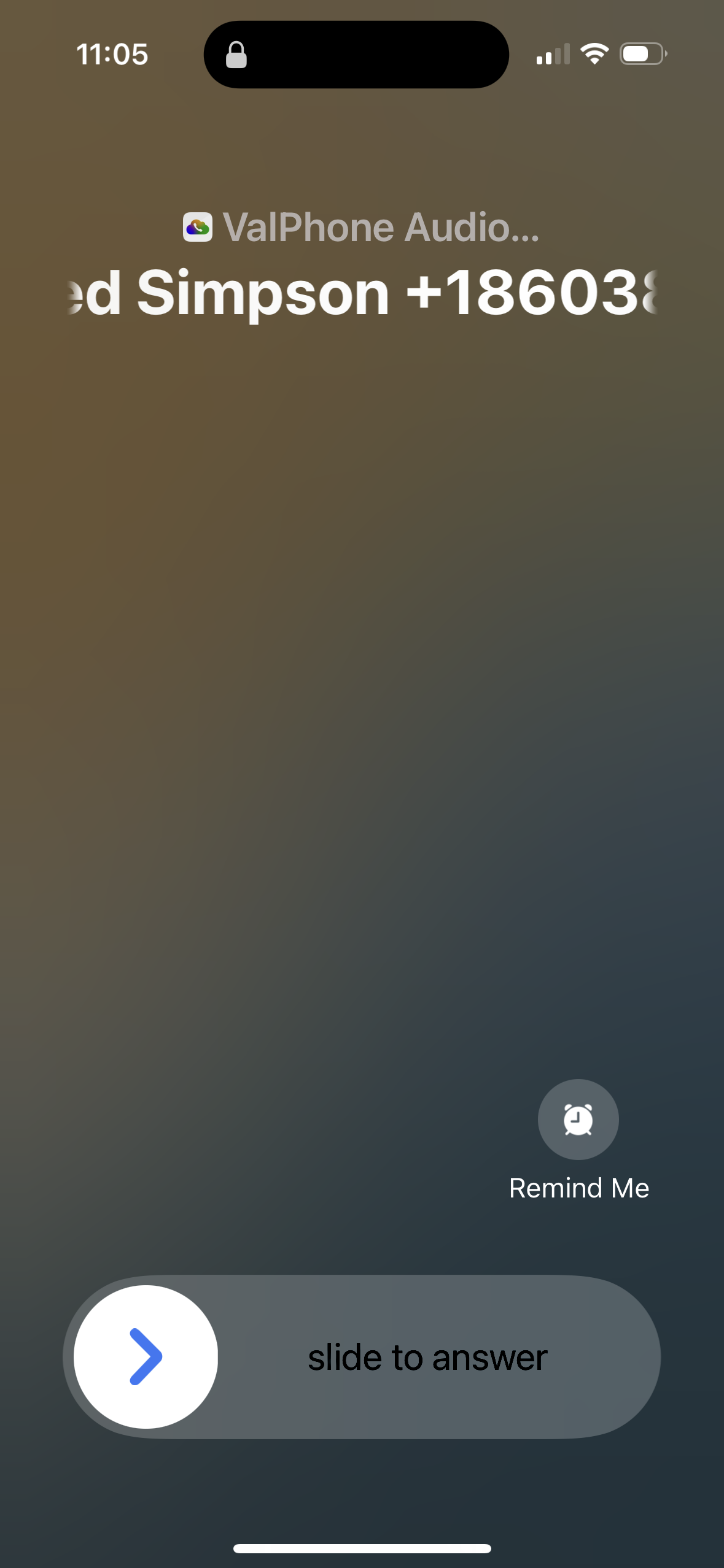 - When receiving an inbound call while the phone is locked, answer calls using the slide to answer feature.