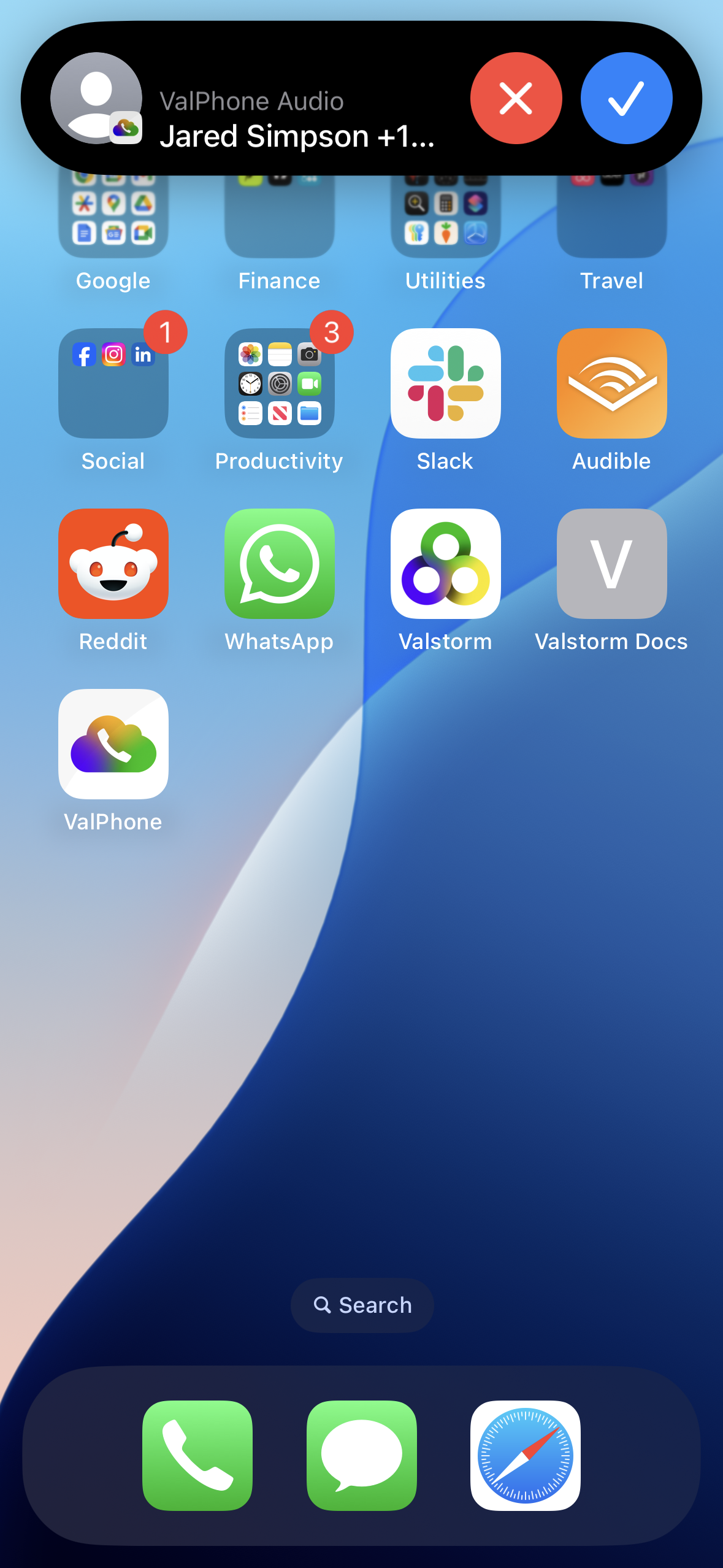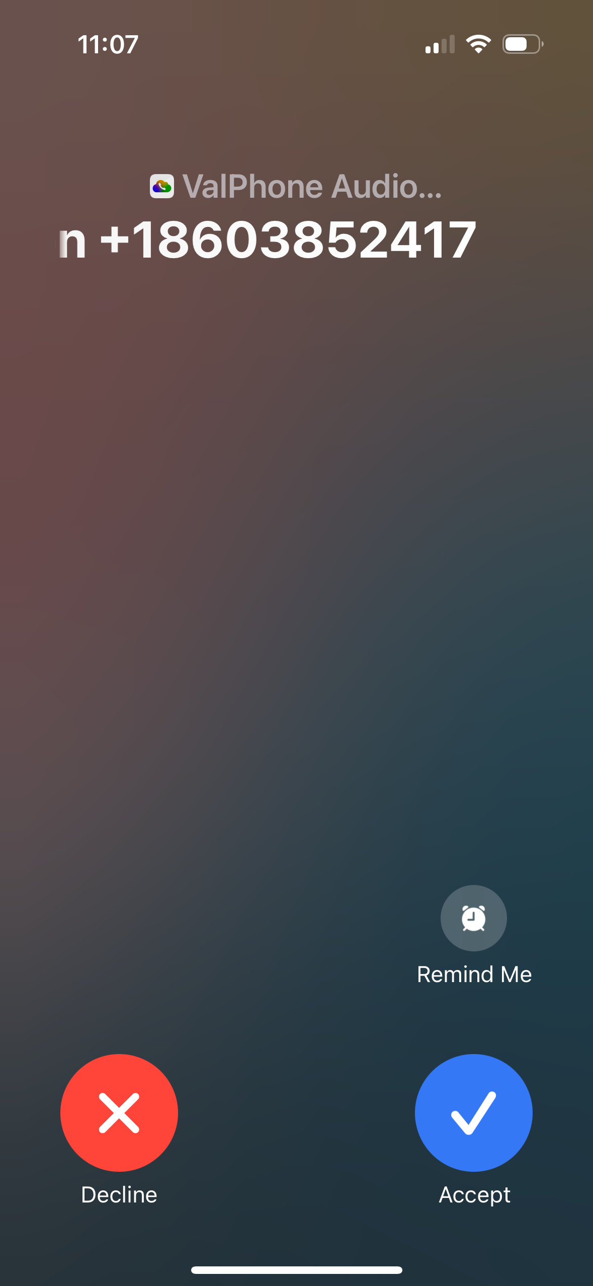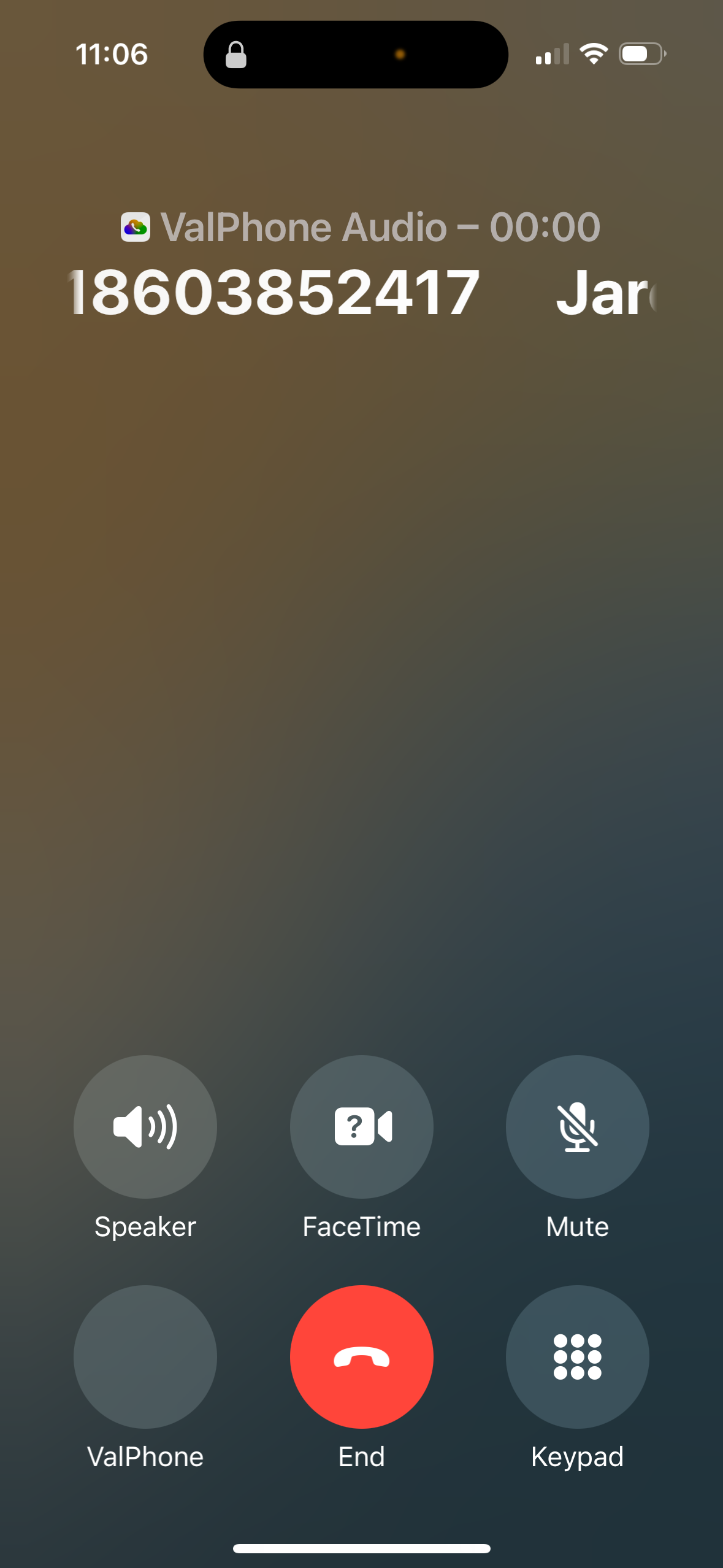 - Once you Answer the call, you will see this screen. Click the "ValPhone" button in the bottom left corner to open the app for more options