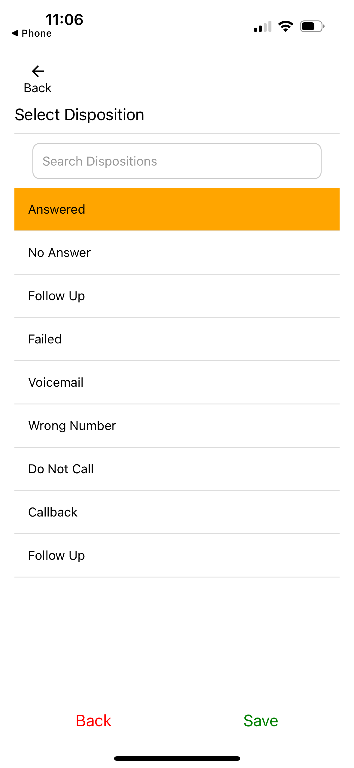 - You can then disposition the call according to the outcome of the call